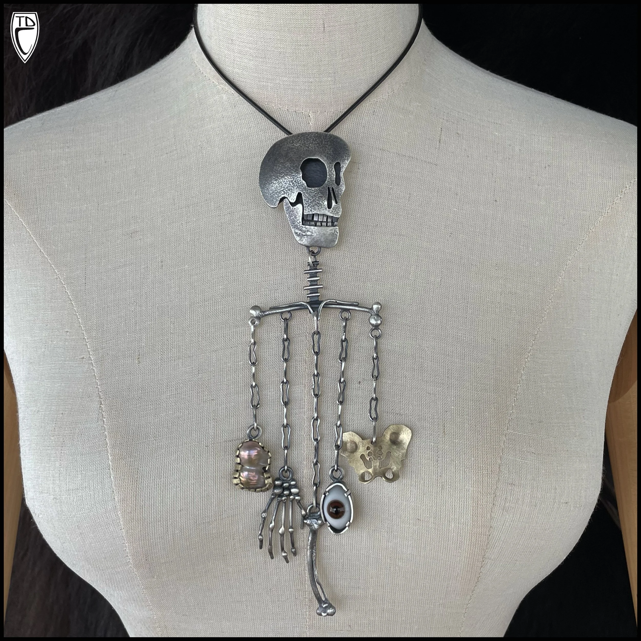 “Reliquary of a Forgotten” is completely hand fabricated, including chain, from sterling silver and brass and is worn as a chatelaine or brooch using the handmade sterling silver and 18 gauge spring steel mechanism and as a pendant using the integrated hidden bale. The piece measures approximately 8×2.25” and is signed, hallmarked and dated 2025. Flat rate insured and tracked USPS Ground Advantage shipping or USPS Priority shipping within the US. International shipping prices vary.